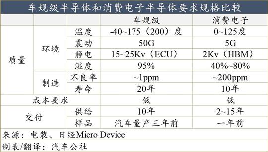 车规级半导体和消费电子半导体要求规格比较