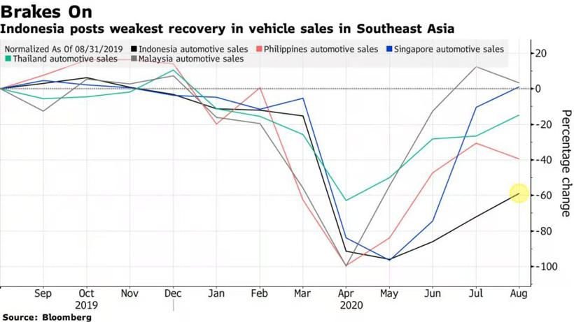 2020年接近尾声,印尼的新车销售依旧复苏乏力。8月以后,东南亚大部分国家的销量已陆续回到新冠肺炎肆虐前的水平,但印尼销量尚不到去年同期的一半。