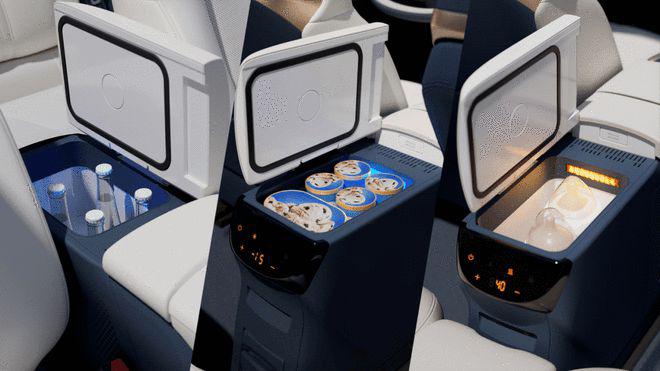 在极氪X中有很多创新技术的应用,比如将传统的固定式中央扶手改造为智能灵动中岛。智能灵动中岛可实现205mm的电动滑移,基于用户共创的品牌精神,极氪X将座舱体验的定义权还给用户,对智能灵动中岛的后半部进行嵌入式模块化设计,可以让用户根据场景需求共创可拆装的智能设备。上市当晚,极氪X为这个灵感共创平台带来了一台5.7升大容量嵌入式冰箱。