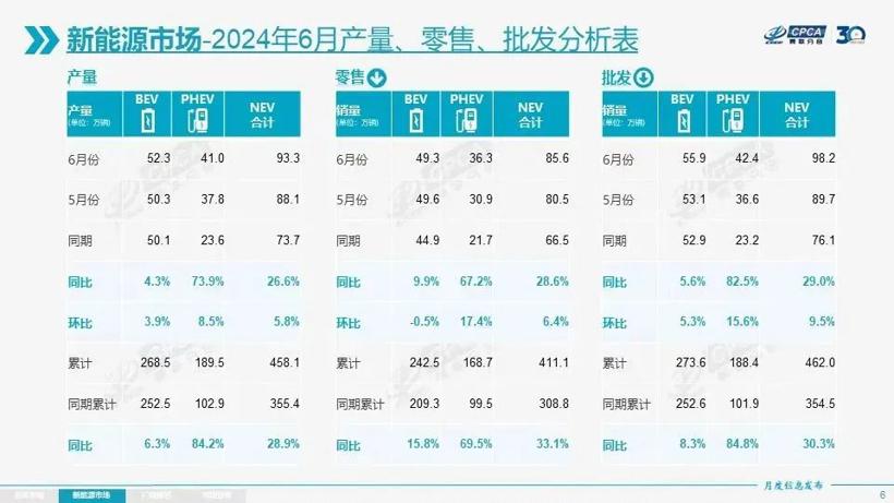 2024上半年,当整体乘用车零售销量仅同比增长2.9%至993.3万辆时,新能源车却以411.1万辆销量和33.1%增幅脱颖而出,渗透率41.4%。其中,插混(含增程)同比激增69.5%,纯电增幅15.8%。插混的168.7万辆和纯电的242.5万辆相去不远。
